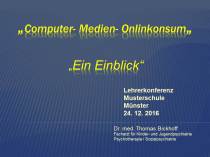 Computer und das Internet sind allgegenwärtig und haben erhebliche Veränderungen in unseren Alltag gebracht. Immer wieder kommen Eltern auf uns zu mit der Frage wieviel Computer-, Handy-, Konsolen- oder Internetkonsum sind noch normal, wann werden Grenzen überschritten und welche Inhalte sind altersgemäß.